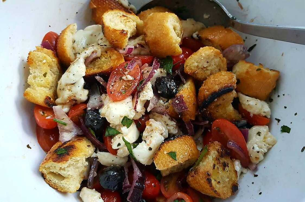 1. Pain : Coupez le pain en morceaux et faites-le tremper dans de l’eau. Pressez pour enlever l’excédent d’eau.